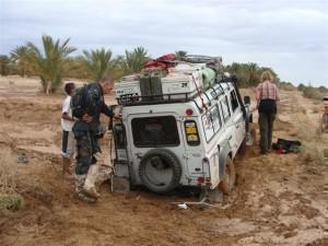 Today went well, for a while! The rain during the night had made a few of the dry river beds a little less dry and the poor Land-rover got well and truly stuck in one ravine. Luckily we were only about half a mile from the little town and lots of locals came to help dig it out. After 45 mins we were rolling again. We stopped in the town and grabbed breakfast. From there the rest of the day was a fast run through the desert to Erg Chebbi, where I am writing this. The riding was superb. I’ve got pretty quick on sand now. Its very odd, almost like riding on ice but when you get the hang of it, its great fun. I felt bad that Mark hasn’t been next to me though.
