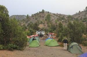 As the desert disappeared behind us, we slowly began to encounter more and more civilisation. By early afternoon we had passed Er Rachidia, where Mark had visited hospital a couple of days before, and a main bivouac centre for the Dakar when it used to pass this way. The hours passed calmly and the temperature dropped rapidly as we climbed into the Atlas mountains once more. As we pulled into our night spot, snow was visible along the peaks of the nearby ranges. We were glad to have rooms to check into rather than pitch the tents, even though the rooms were only half built!! No one batted an eyelid – we are definitely all in a Moroccan frame of mind now!