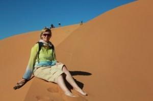 We have woken to proper desert weather today. Clear blue sky and high temperature. We were up early……again…….to get into the huge dunes here before it got to hot.
