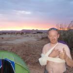 (Later that evening)….. It was getting late but Mick and Mark got back eventually. They had taken a 200 mile round trip to Er Rachidia hospital to get Mark x-rayed. Good news, Nothing broken. We are not sure what the damage is but Mark has some strong pain killers and seems much better. Happy camp again tonight.
